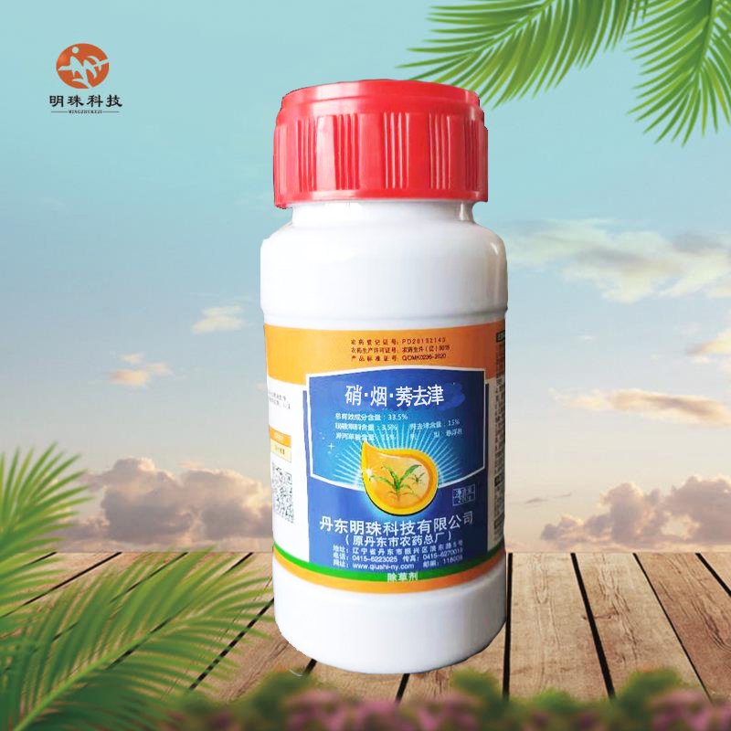 本品為由硝磺草酮、煙嘧磺隆和莠去津復(fù)配的選擇性苗后除草劑,對(duì)稗草、馬唐、狗尾草、馬齒莧、莧菜、蓼等一年生雜草有較好的防效。